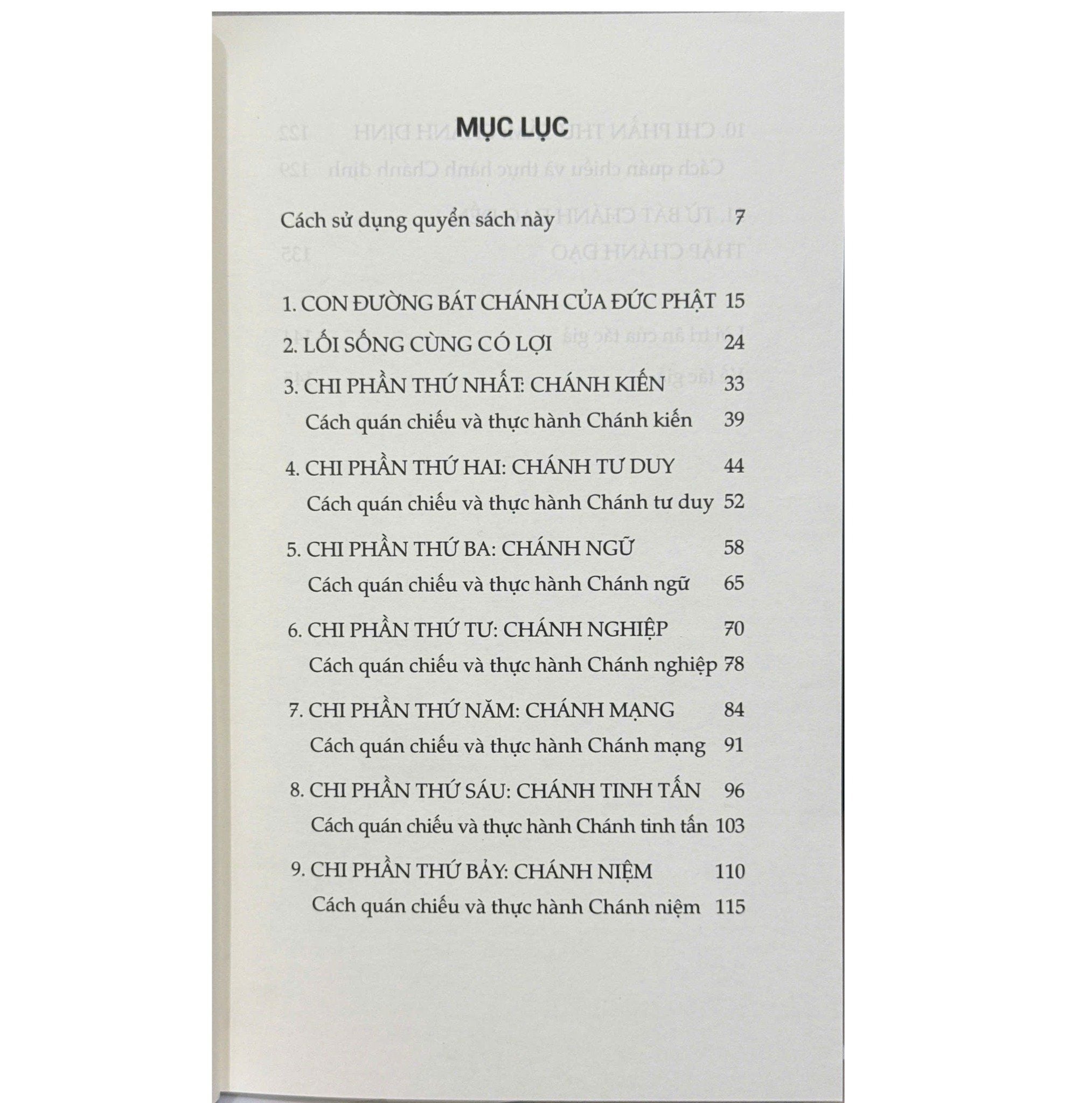 Con đường đi đến giải thoát: Bát chánh đạo của Đức Phật tập trung vào Bát Chánh Đạo, một trong những pháp môn hữu ích và dễ dàng nhất để đạt được sự giác ngộ. Qua từng chi phần, độc giả sẽ tìm thấy các quán chiếu và rèn luyện giúp củng cố sự hiểu biết và thực hành của mình. Đọc quyển sách này giống như việc nấu ăn từ công thức: chỉ đọc không đủ, bạn cần thực hành để cảm nhận hương vị của sự giải thoát. Tác giả cuốn sách – Gil Fronsdal hy vọng rằng những tri thức và bài tập trong sách sẽ truyền cảm hứng cho bạn đọc, khơi dậy ý thức quán chiếu và chiêm nghiệm về mối quan hệ của bạn đọc với giáo pháp Phật giáo. Qua việc tìm hiểu và thực hành với các giáo lý, bạn có thể nhận diện rõ hơn những thách thức cũng như cơ hội trong hành trình tu tập của mình.