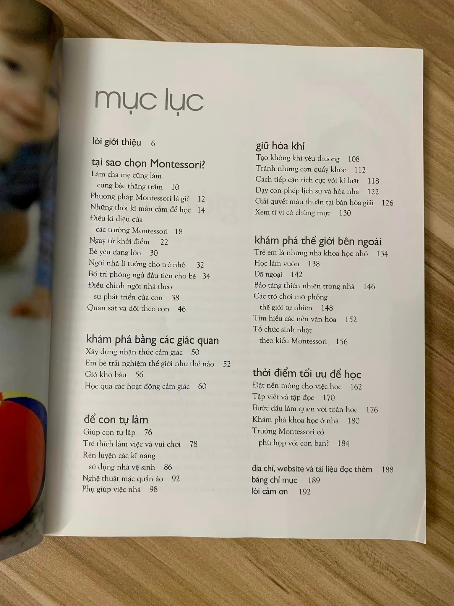 Nuôi dạy con theo phương pháp Montessori được viết để giúp các bậc cha mẹ có thêm hiểu biết về phương pháp Montessori và đưa ra hướng dẫn về việc nuôi dạy con dựa trên phương pháp này. Bằng việc áp dụng phương pháp này, cha mẹ có thể giúp con trẻ khám phá, phát triển các kỹ năng tự lập, tập trung và giao tiếp.