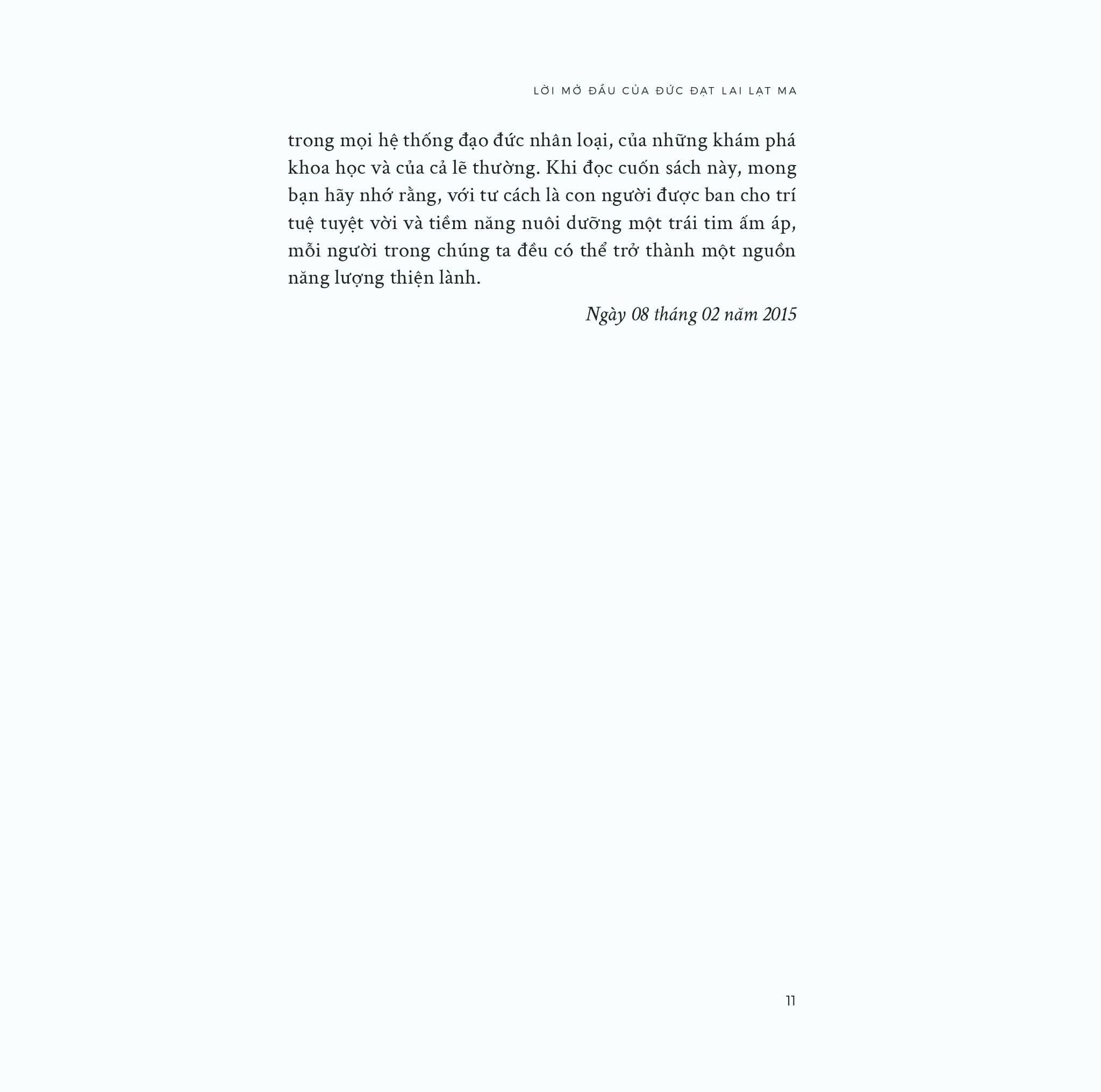 Dưới ngòi bút của Daniel Goleman - nhà tâm lý học nổi tiếng với nhiều công trình về trí tuệ cảm xúc - tư tưởng của Đức Đạt Lai Lạt Ma được đặt trong đối thoại trực tiếp với khoa học hiện đại, tâm lý học, giáo dục và các mô hình xã hội đương đại. Điều làm nên giá trị đặc biệt của cuốn sách không nằm ở những khái niệm cao siêu, mà ở cách từ bi, chánh niệm và trách nhiệm đạo đức được trình bày như những năng lực có thể học hỏi, rèn luyện và đưa vào hành động cụ thể.